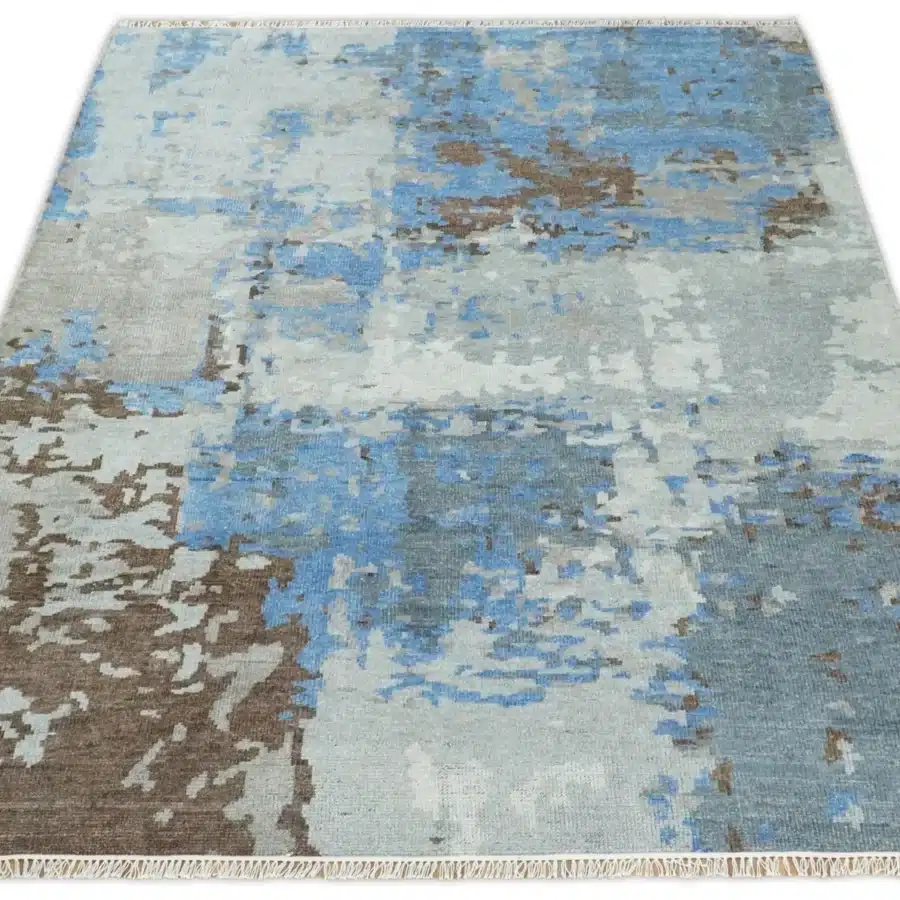 Elevate your living space with our exquisite Fine Modern Geometric 8×10 Hand-Knotted Multicolor Abstract Wool Area Rug. Crafted from handspun wool, this rug boasts a unique modern pattern that harmoniously blends vibrant colors, making it the perfect addition to any room.
