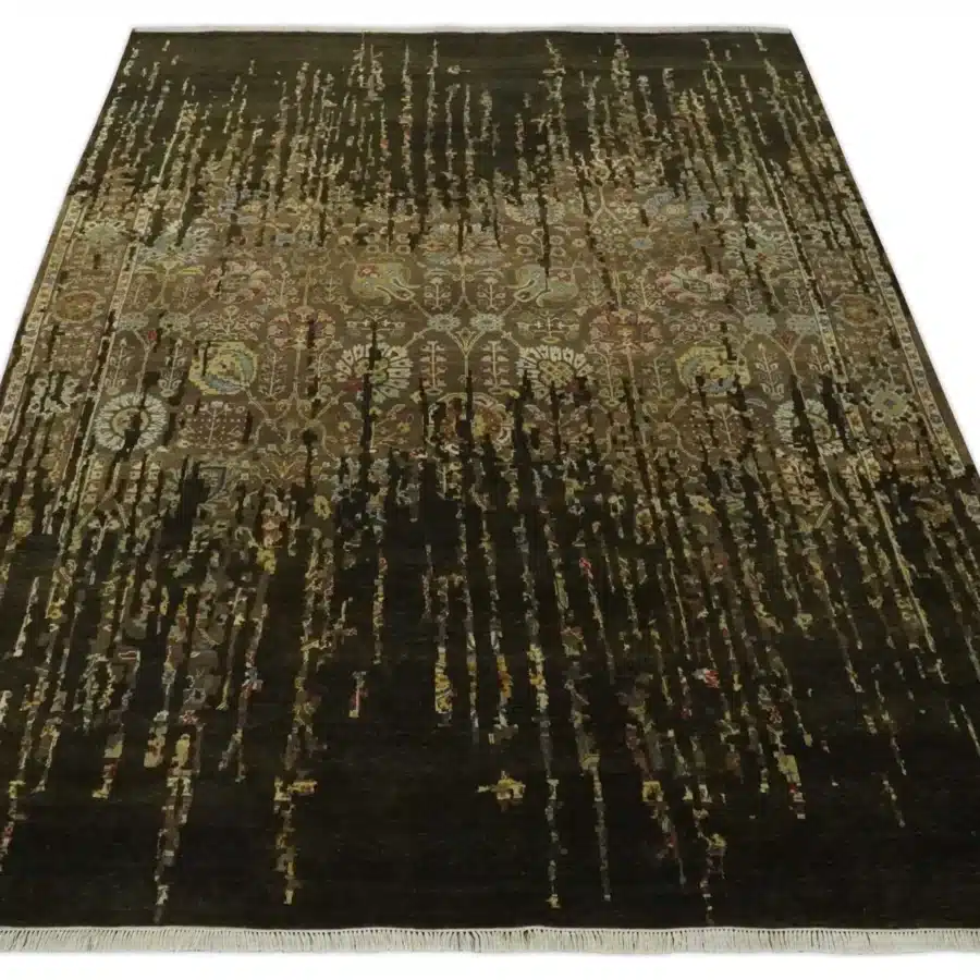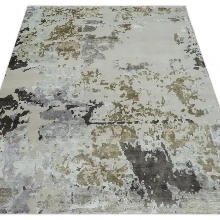 $1,846.80 Select options This product has multiple variants. The options may be chosen on the product pagePremium Hand Knotted Camel, Sliver, Olive And Charcoal Modern Abstract Wool And Silk Blended 8X10 Area Rug